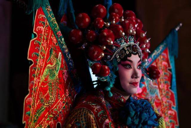“候场”是演出开始前的典型环节,我选择用弱曝光展现演员的状态,让戏曲行头鲜艳的颜色铺满画面。这时,演员明亮的眼睛与昏暗静默的氛围形成对比,展现出他们候场时紧张、期待又坚定的心理。