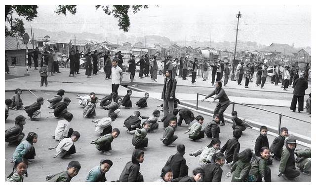1956年的广州,学生们做广播体操,整齐划一,充满活力;而街头玩耍的孩子,一个背着更小的弟妹,日常生活虽朴素,却温暖而充实。