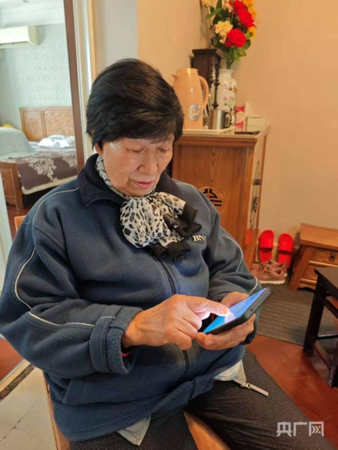 赵秀兰在“养老易购”消费券应用平台下单(央广网记者 王锡斐 摄)