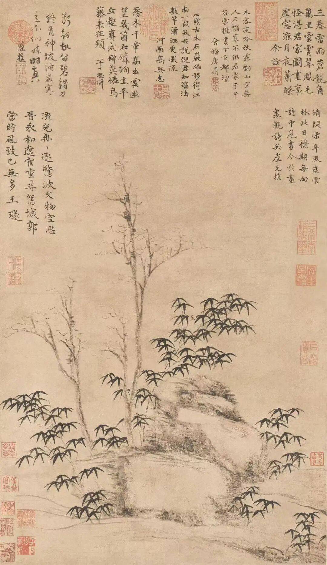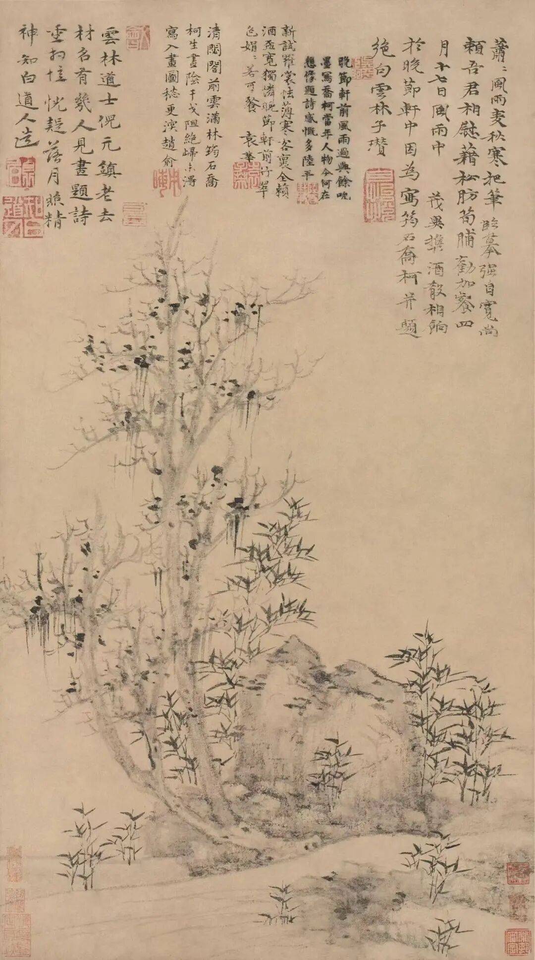 8.洪武六年(1373)一月二十一日 顾安、张绅、倪瓒合作《古木竹石图》 台北故宫博物院藏