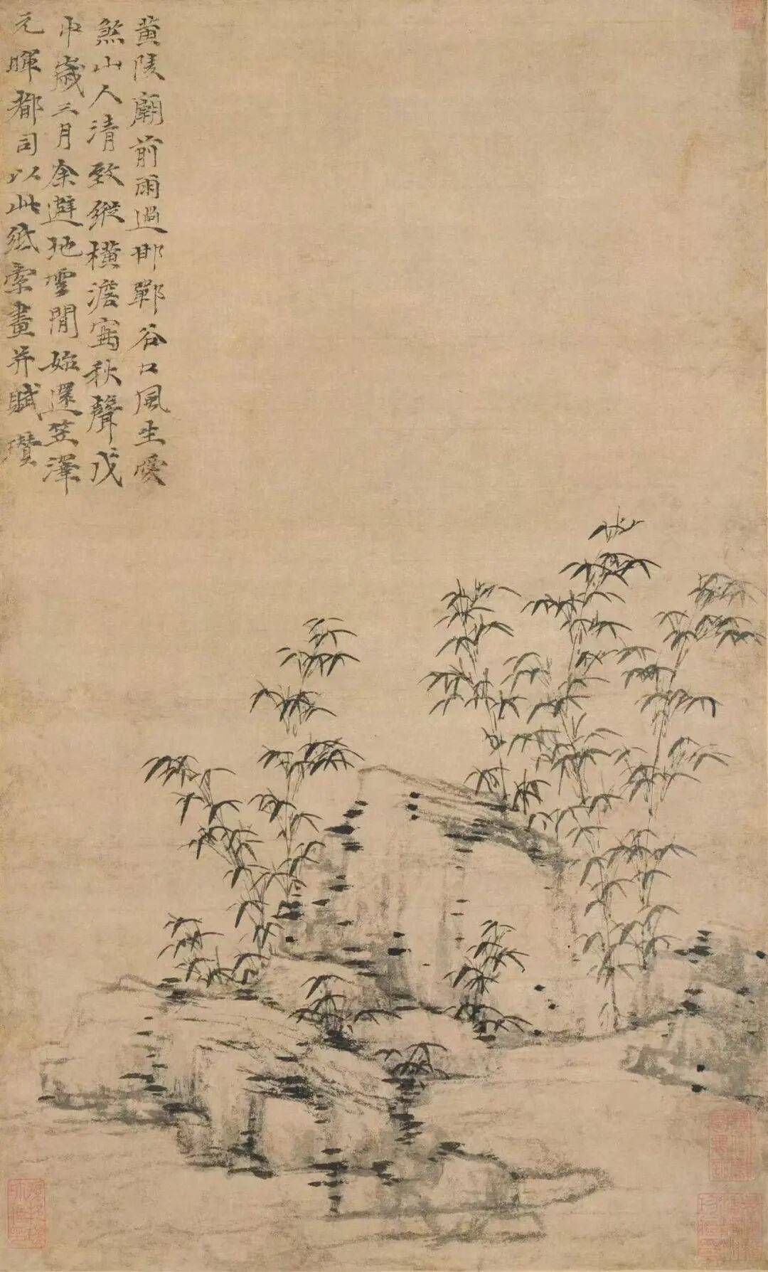 3.洪武元年(1368)三月 《竹石图》(《笠泽秋声图》) 上海博物馆藏