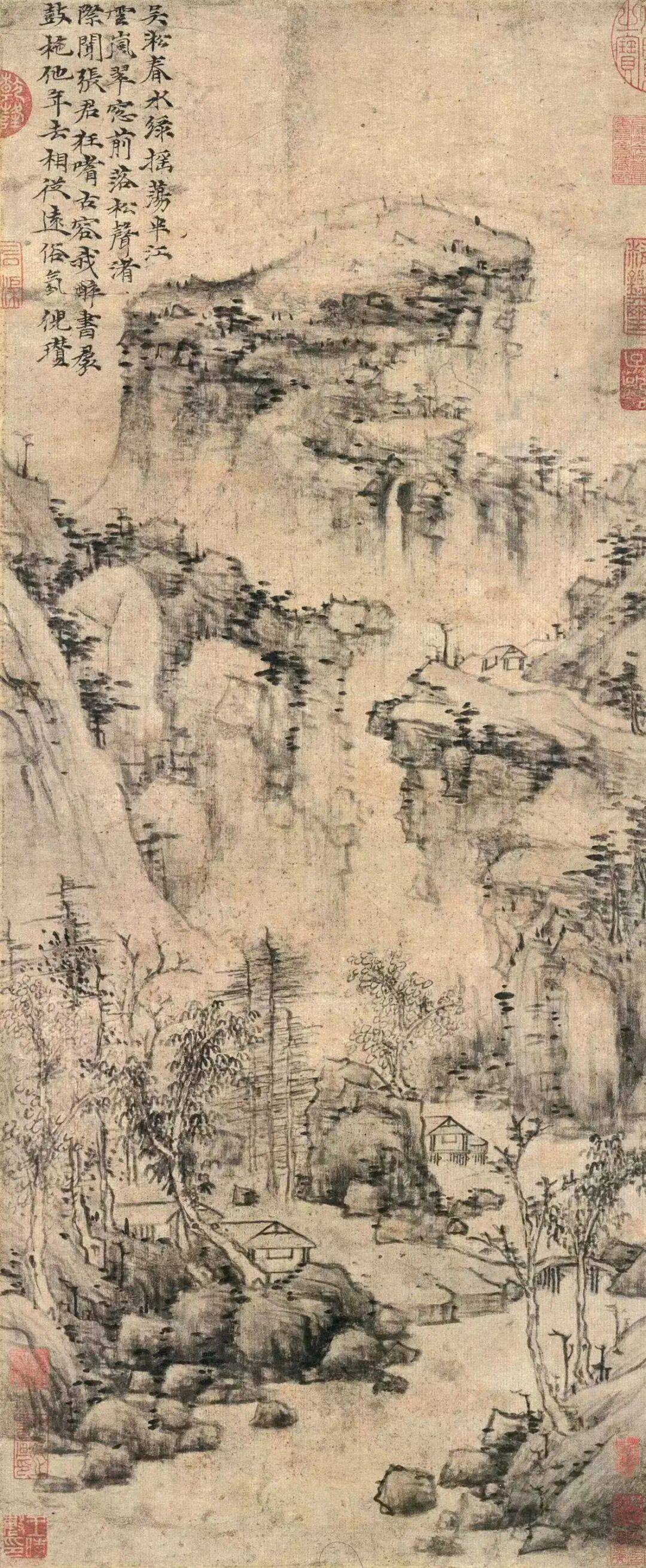 图 29ˉ《吴淞春水图》纸本设色,64.6cm×26.6cm,张中(传),元,无纪年,上海博物馆藏