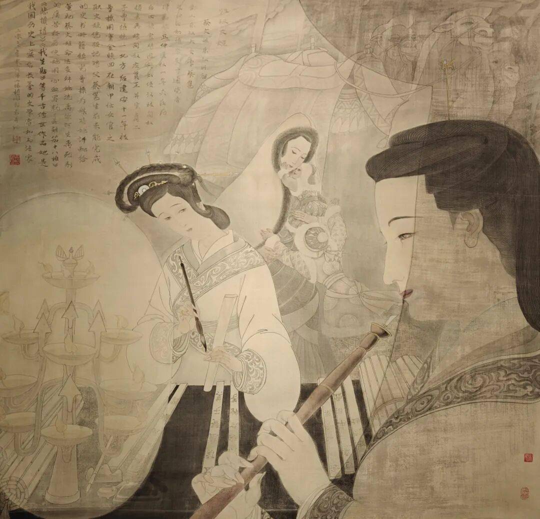 再后来她辞去画院工作,专攻工笔国画,潜心探索女性题材。