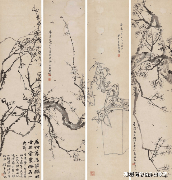 此外,如吴昌硕以金石笔法入画,画梅浑厚老辣;齐白石画梅则简括质朴、天真烂漫;而董寿平的梅花被称为“董梅”,风格潇洒清新,都各有千秋,共同丰富了中国梅画的宝库。