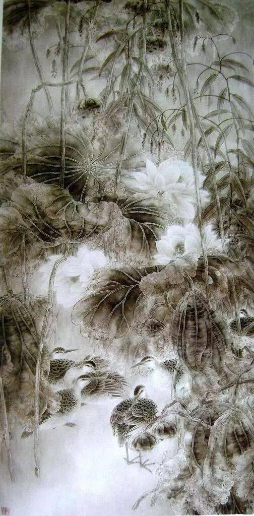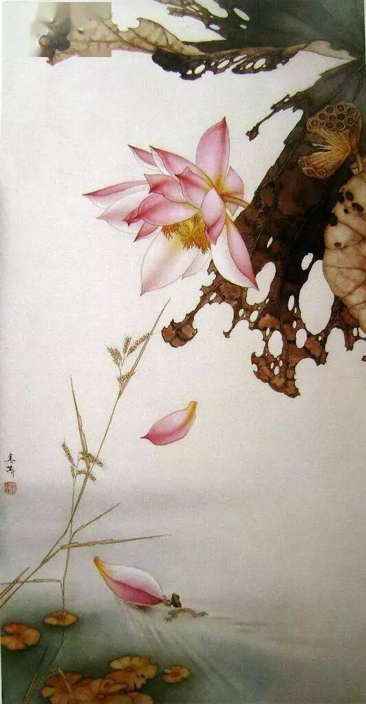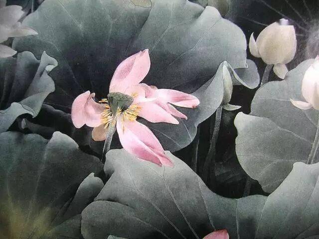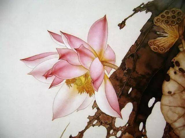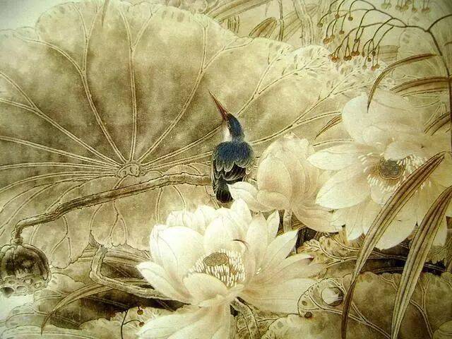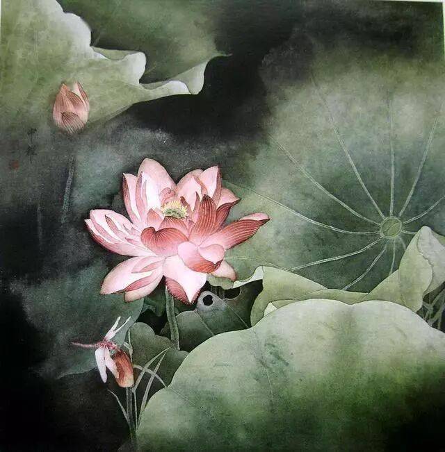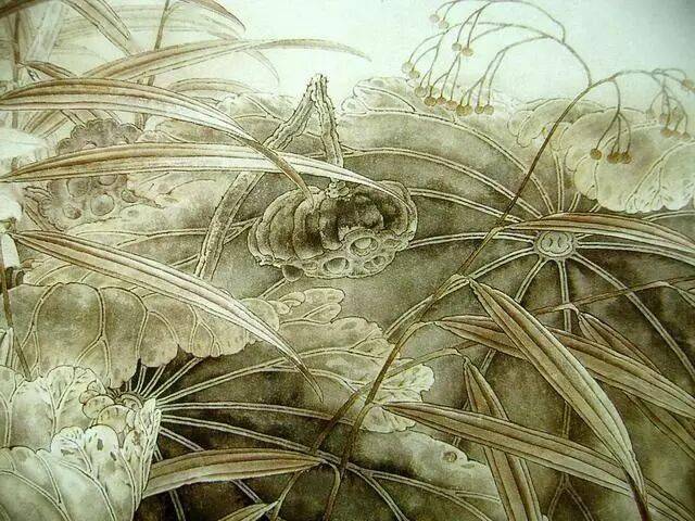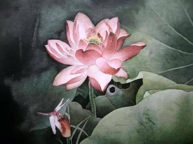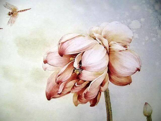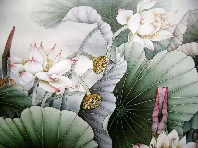 以线造型是中国画技法的特点,也是工笔画的基础和骨干。工笔画对线的要求是工整、细腻、严谨.一般用中锋笔较多。