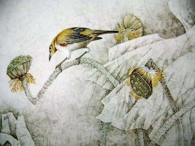 工笔花鸟画,五代黄荃,钩花填色,画法略同于山水人物,均富丽工巧;同代徐熙,独创没骨画法,不用勾廓,直接以色彩染出物象之形态与神韵,表达精致,清新脱俗,时人称谓骨气风神冠绝古今。由于画法较简,后代之写意画法,实受其影响甚巨。其后历代工笔花鸟画,大致不出此限,至清恽南田用徐法而更创新意,工笔花鸟画大盛矣。