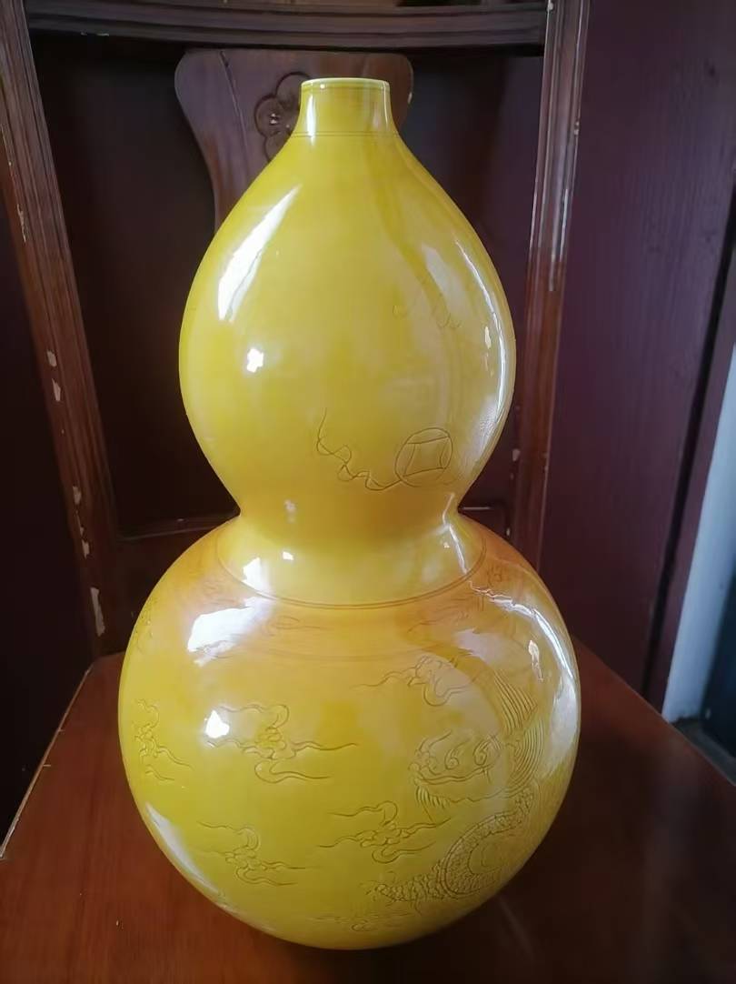 娇黄釉暗刻云龙纹葫芦瓶,是中华陶瓷艺术宝库中的珍品。它以葫芦之形承载福禄吉祥,以娇黄之色彰显皇家气度,以云龙之纹诉说权力叙事,以暗刻之技展现含蓄之美。从明代官窑的熊熊窑火,到今日收藏界的璀璨明珠,这一器型历经数百年而魅力不减。对于收藏者而言,一件娇黄釉葫芦瓶,既是艺术审美的至高享受,更是与历史对话、与文化同行的珍贵机缘。在传统工艺复兴与文化自信增强的今天,这样的艺术珍品必将焕发出更加夺目的光彩。