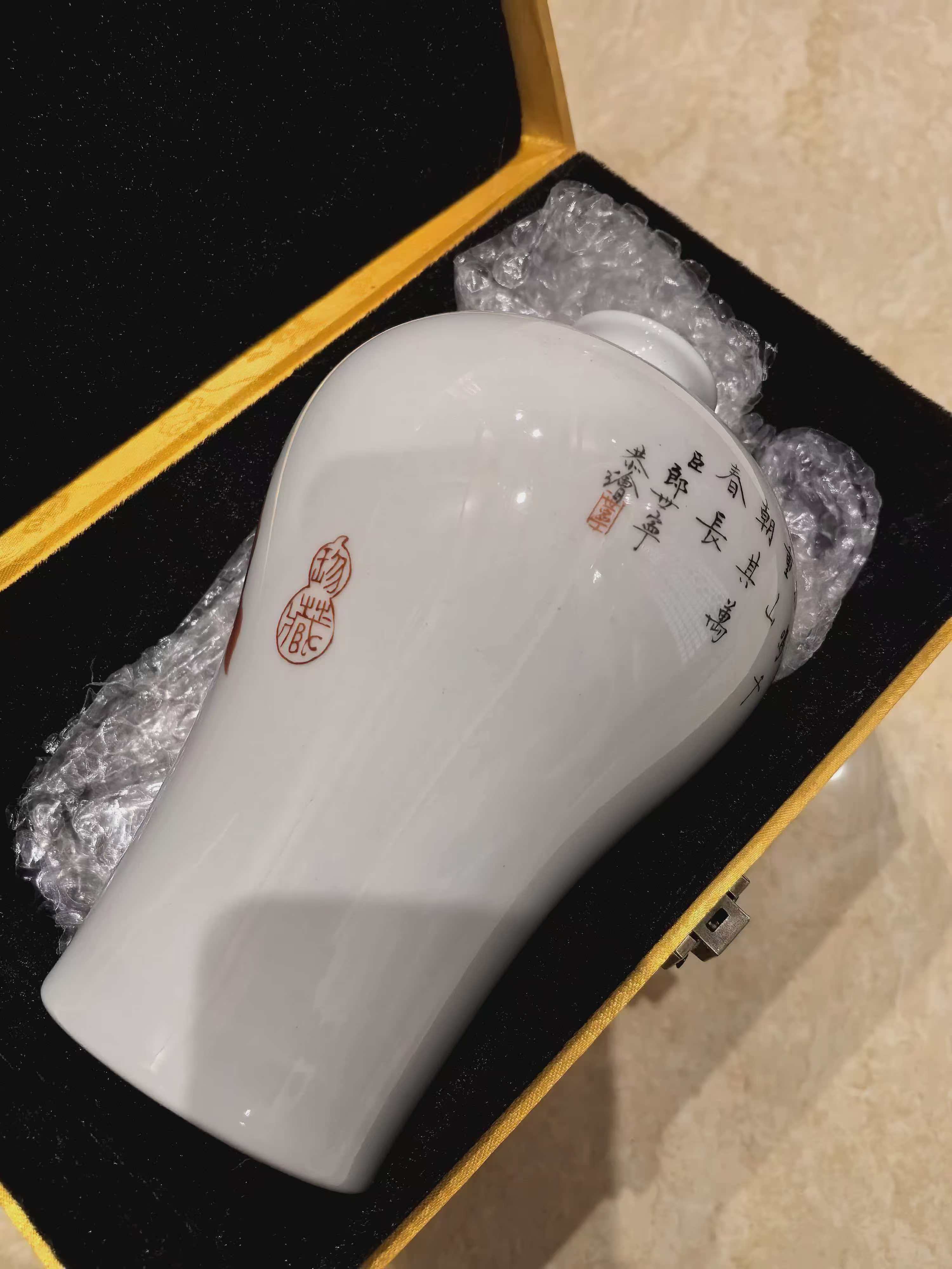 - **口部**:小口直颈,口沿圆润,颈部收束挺拔,既符合梅瓶“小口、短颈”的经典特征,又便于密封陈设,尽显雅致。