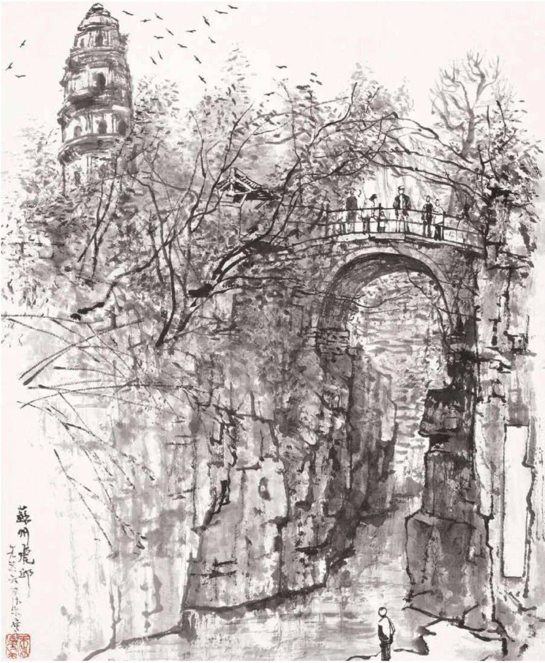 题款:苏州虎丘。一九五六,可染写生。