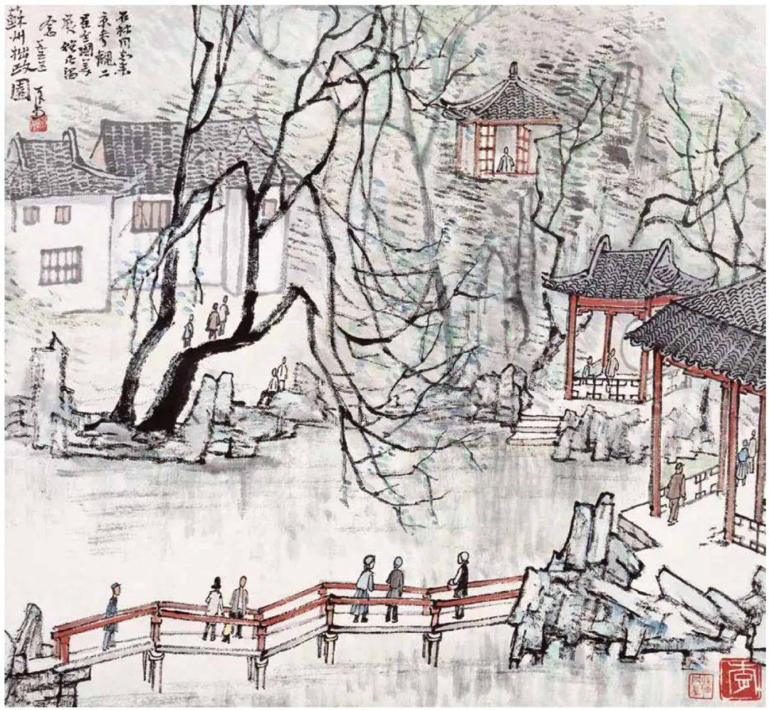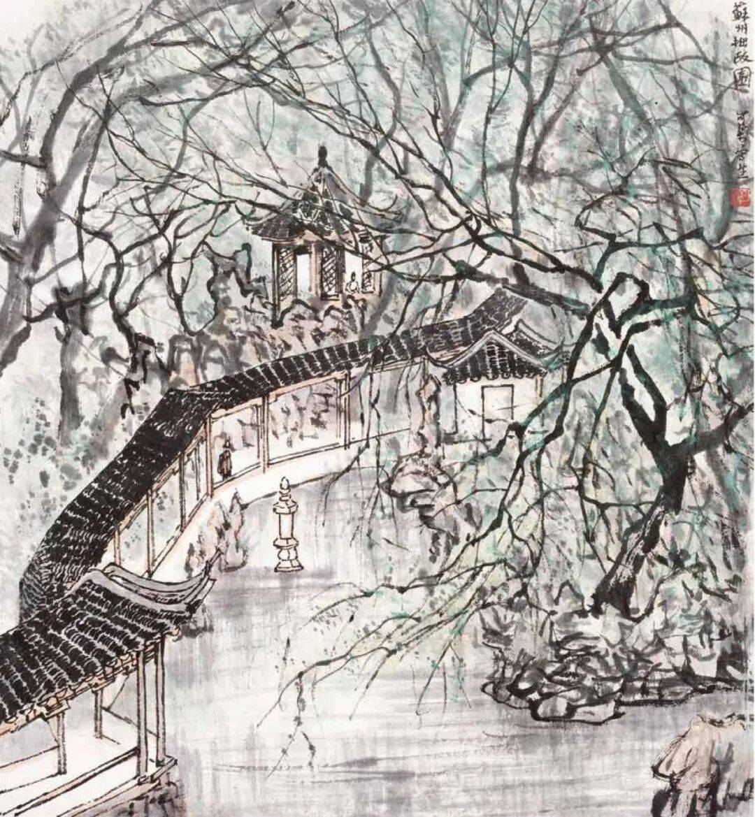 题款:苏州拙政园。可染写生。