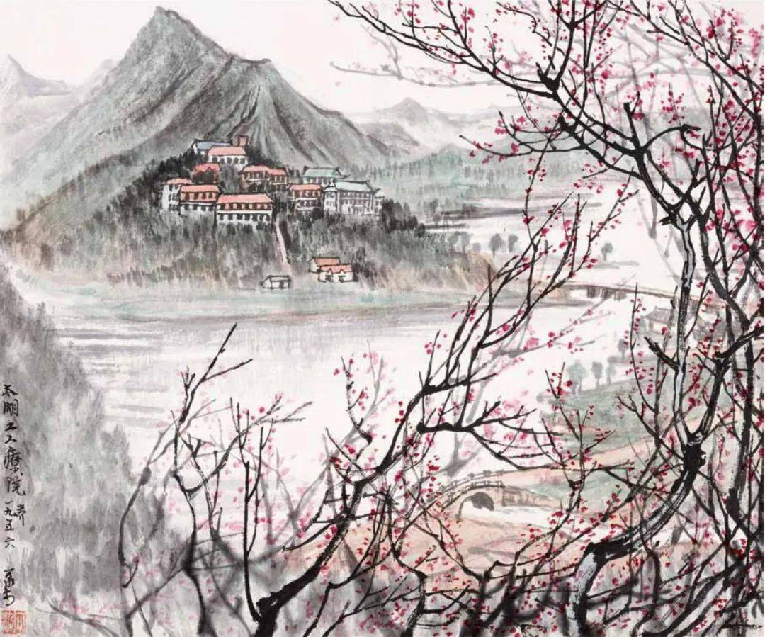 题款:太湖工人疗养院,一九五六,可染。