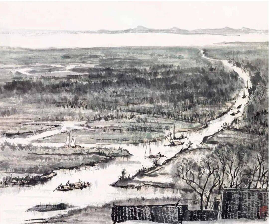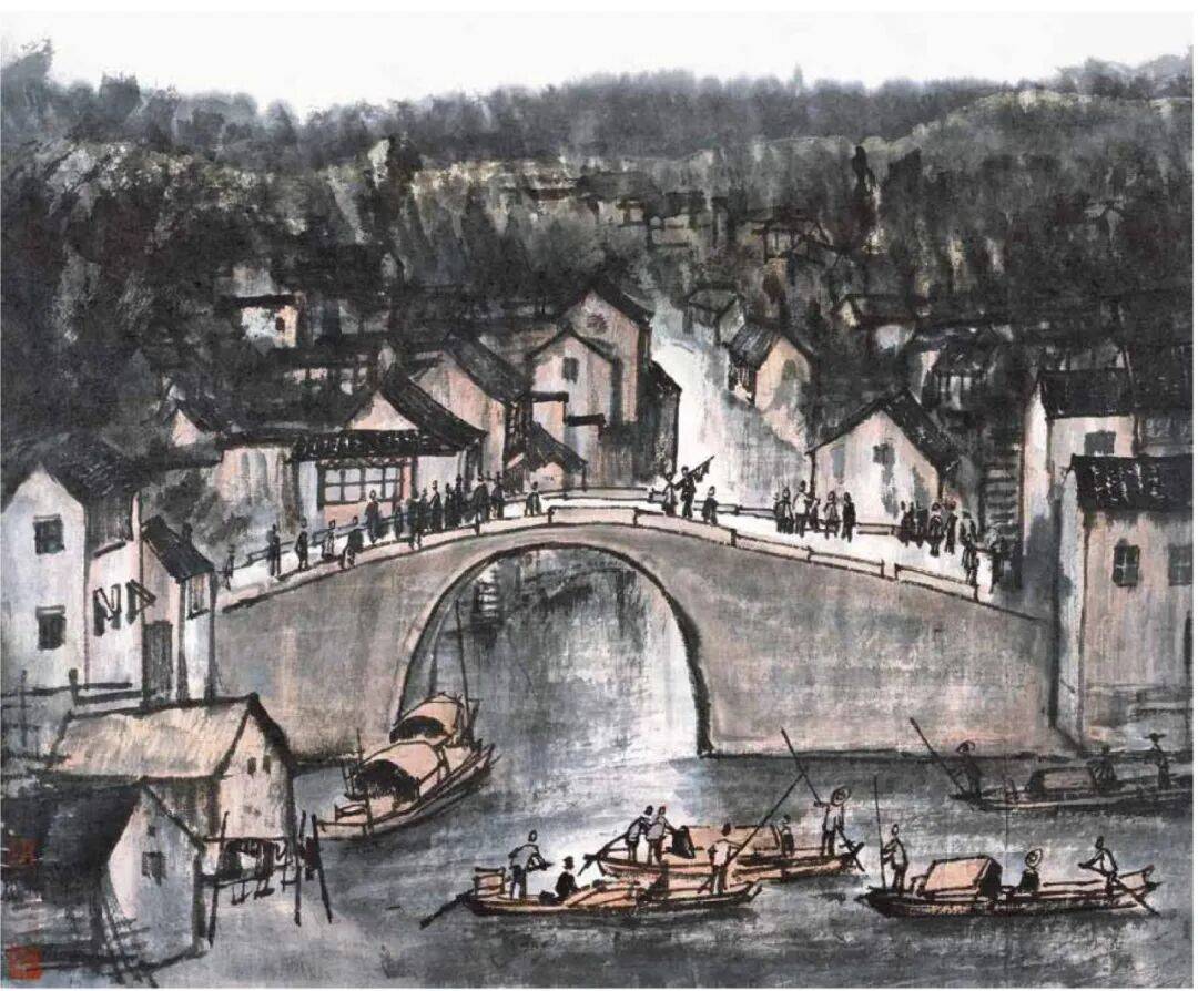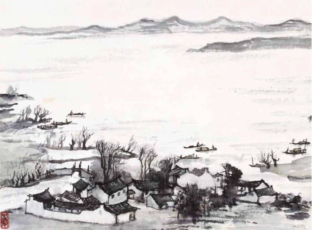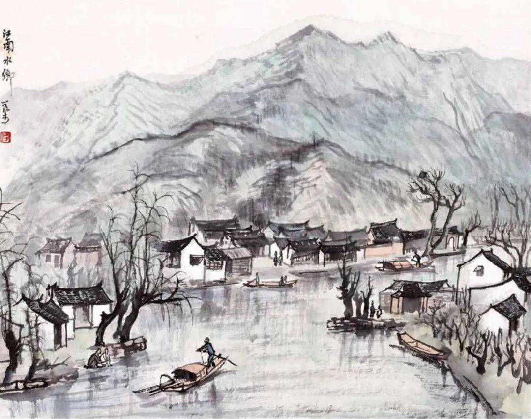 题款:江南水乡,可染。