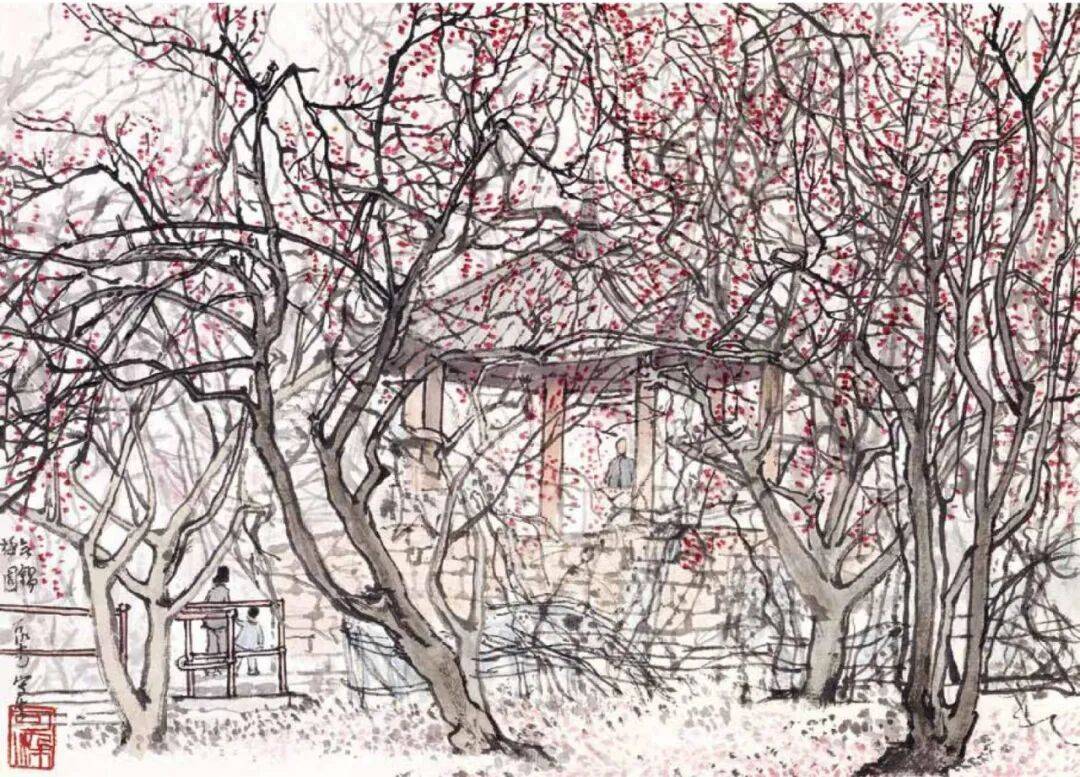 题款:无锡梅园,可染写生。