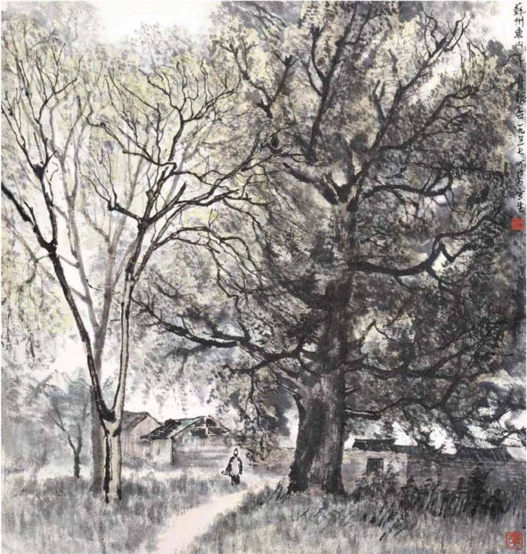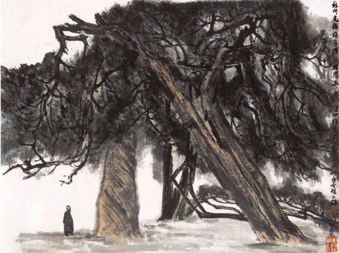 题款:苏州东山千年银杏,—九五七,可染写生。