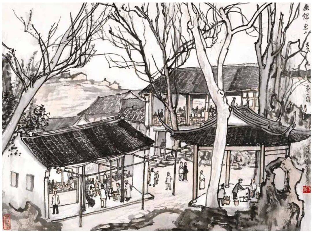 题款:无锡惠山天下第二泉,可染写生。