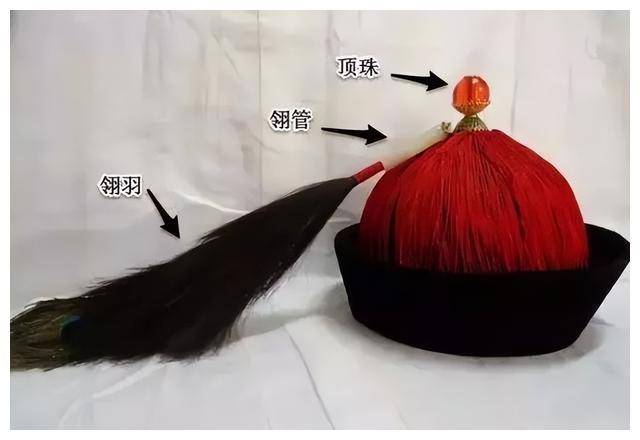 清朝官员的礼帽构造精巧,主要由帽体、顶珠与翎枝组成,顶珠通常会根据官员的品级进行佩戴。举例来说,一品大员的顶珠是红宝石,四品大员的则是青金石。通过顶珠的宝石颜色和材质,旁人便能一眼辨别官员的等级。可花翎与顶珠却不一样,它并非等级的象征,而是一种身份与功绩的荣誉标志。