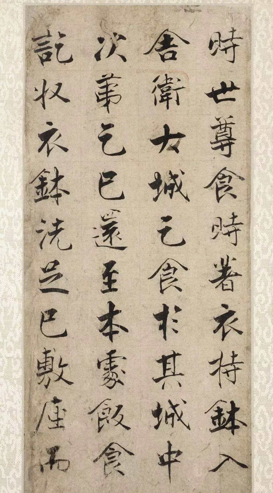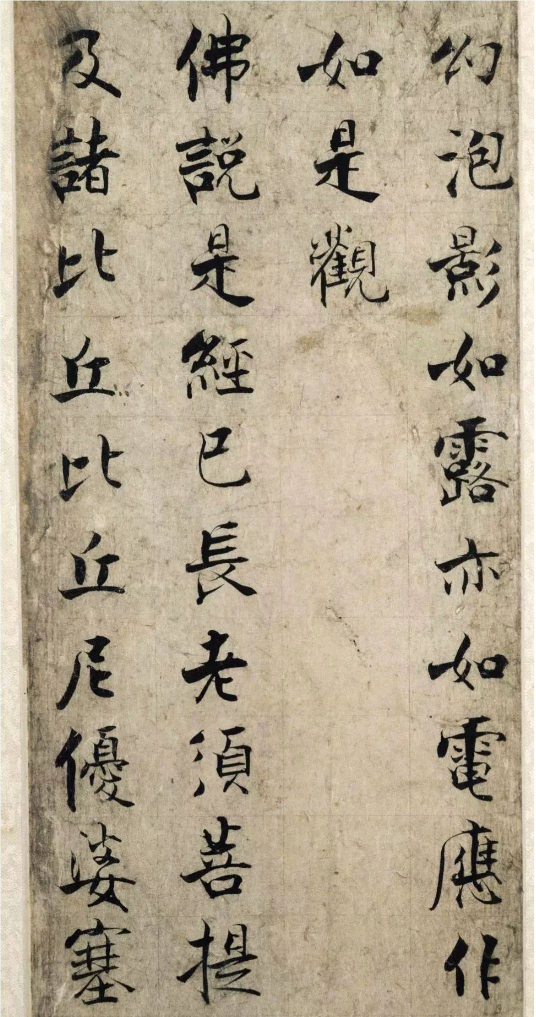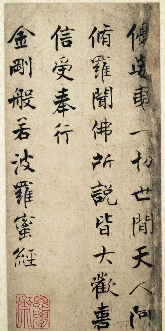 《金刚经》用笔可谓是具有舞蹈之美、灵动之感,下笔像舞蹈家灵敏的脚尖,舒卷自然,美丽大方,收笔沉着厚重,托起整个字的整体结构朴茂自然。