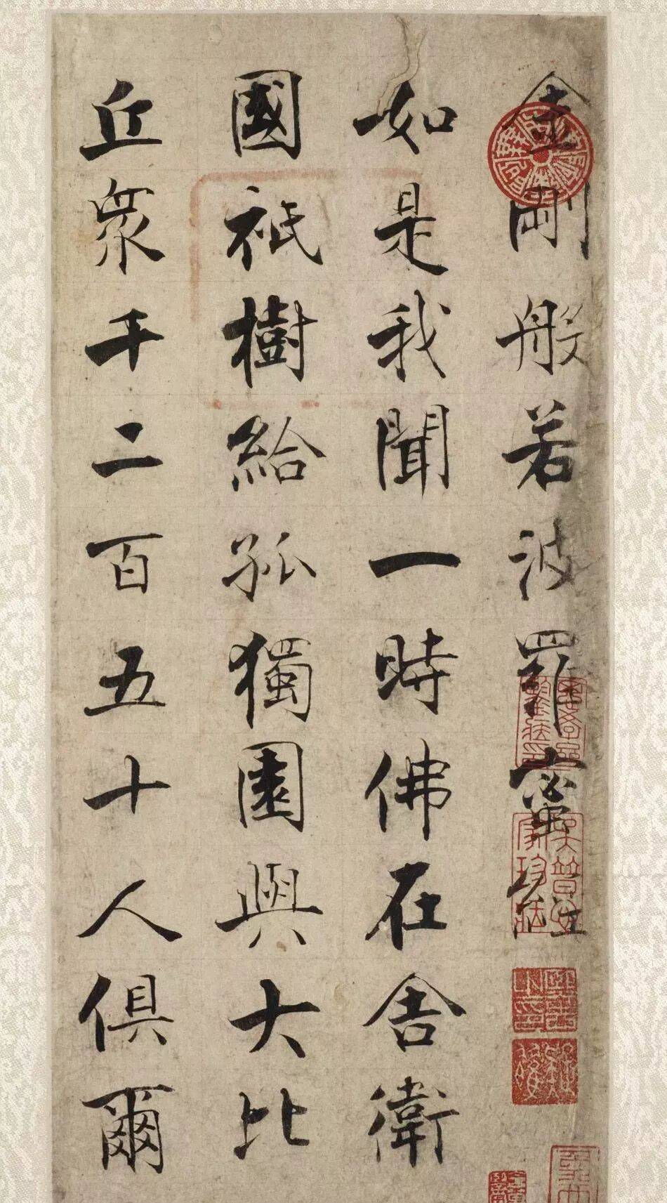 《金刚经》传世闻名者有两册,一为张即之六十八岁为祭奠母亲所书,作为张即之老年时期的作品,此篇张即之《金刚经》小字楷书运笔流畅、含蓄蕴藉。