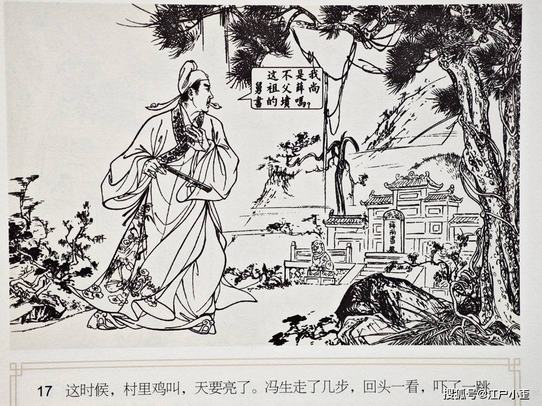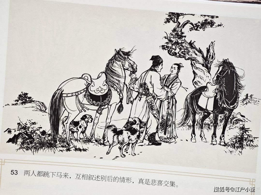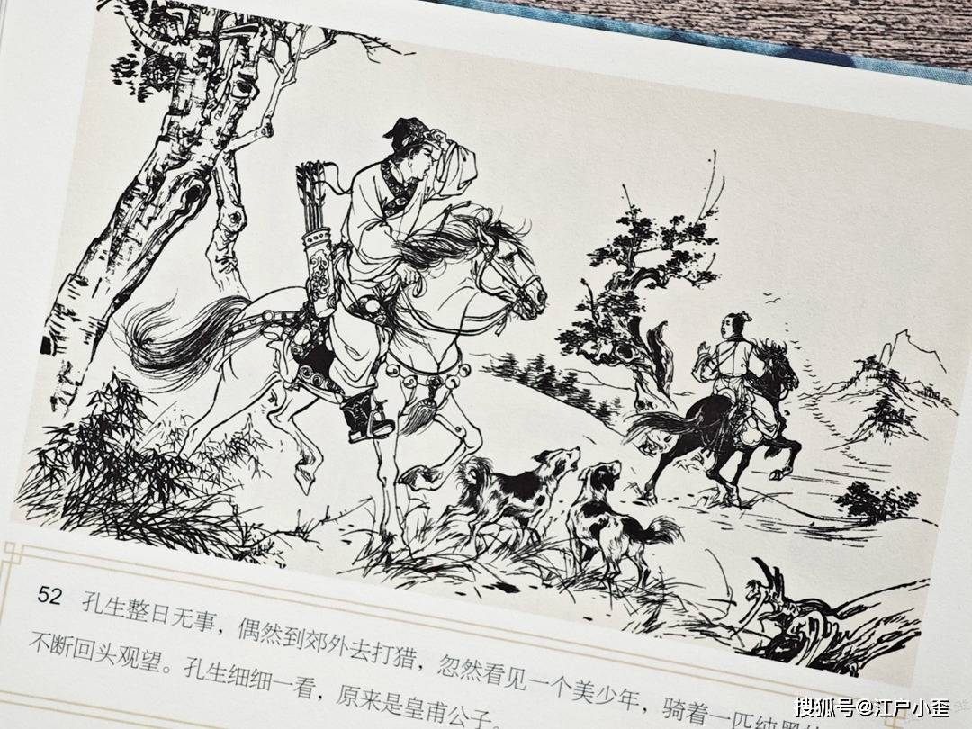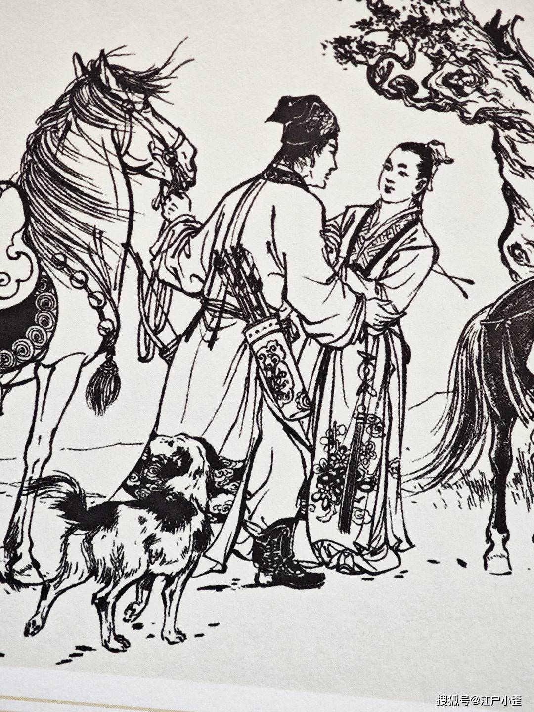 多年后,孔生和皇甫公子重逢,悲喜交集,这马这狗这树,线条太细腻精致,每一根毛发都透露着中国画传统韵味。