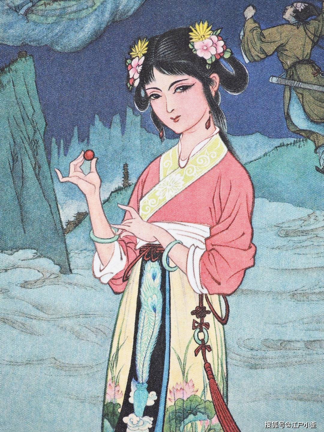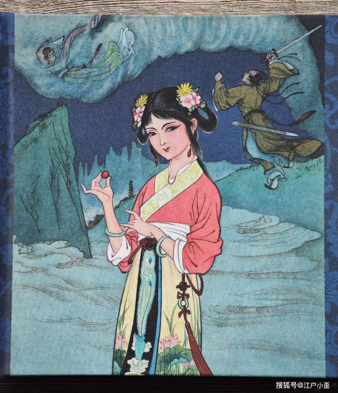 《娇娜》在1958年出过,初代封面已无存,80年代陈冬至重绘,这幅重绘的封面还是对得起内页水准的。人物眉眼还能有三分张令涛、胡若佛的人物特点,娇娜手中那颗内丹,包治百病。