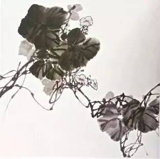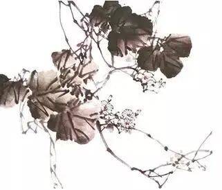 步聚三:用狼毫调有浓淡变化的墨绿色勾画藤蔓,运笔要有气势,有起伏变化。在叶的适当位置上添画出花朵。