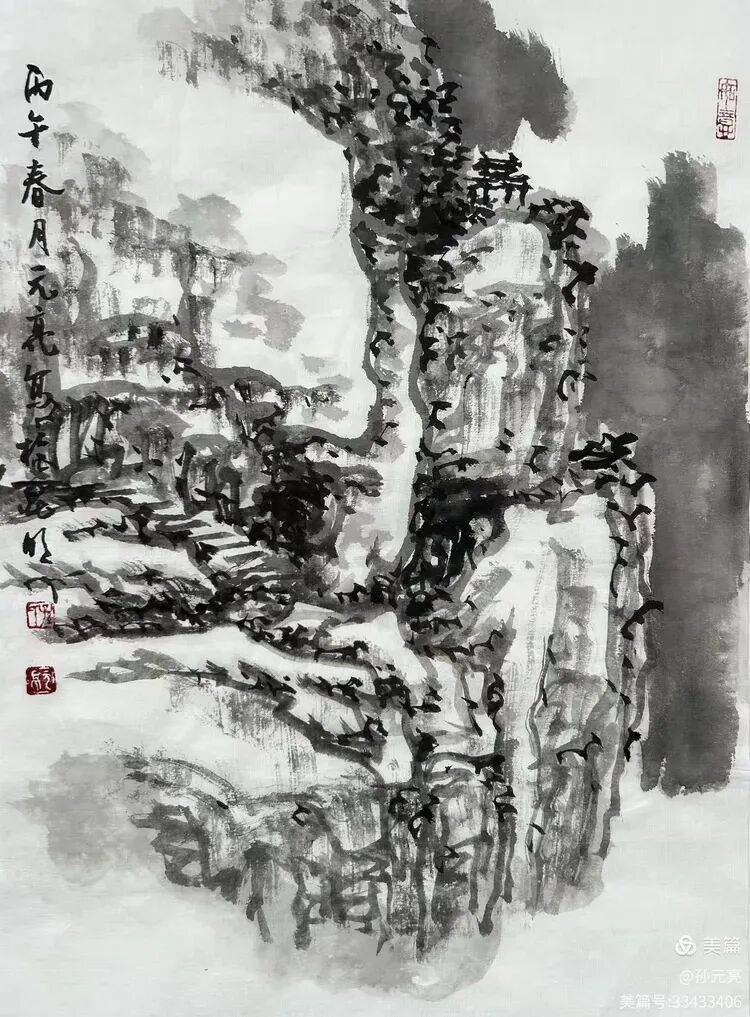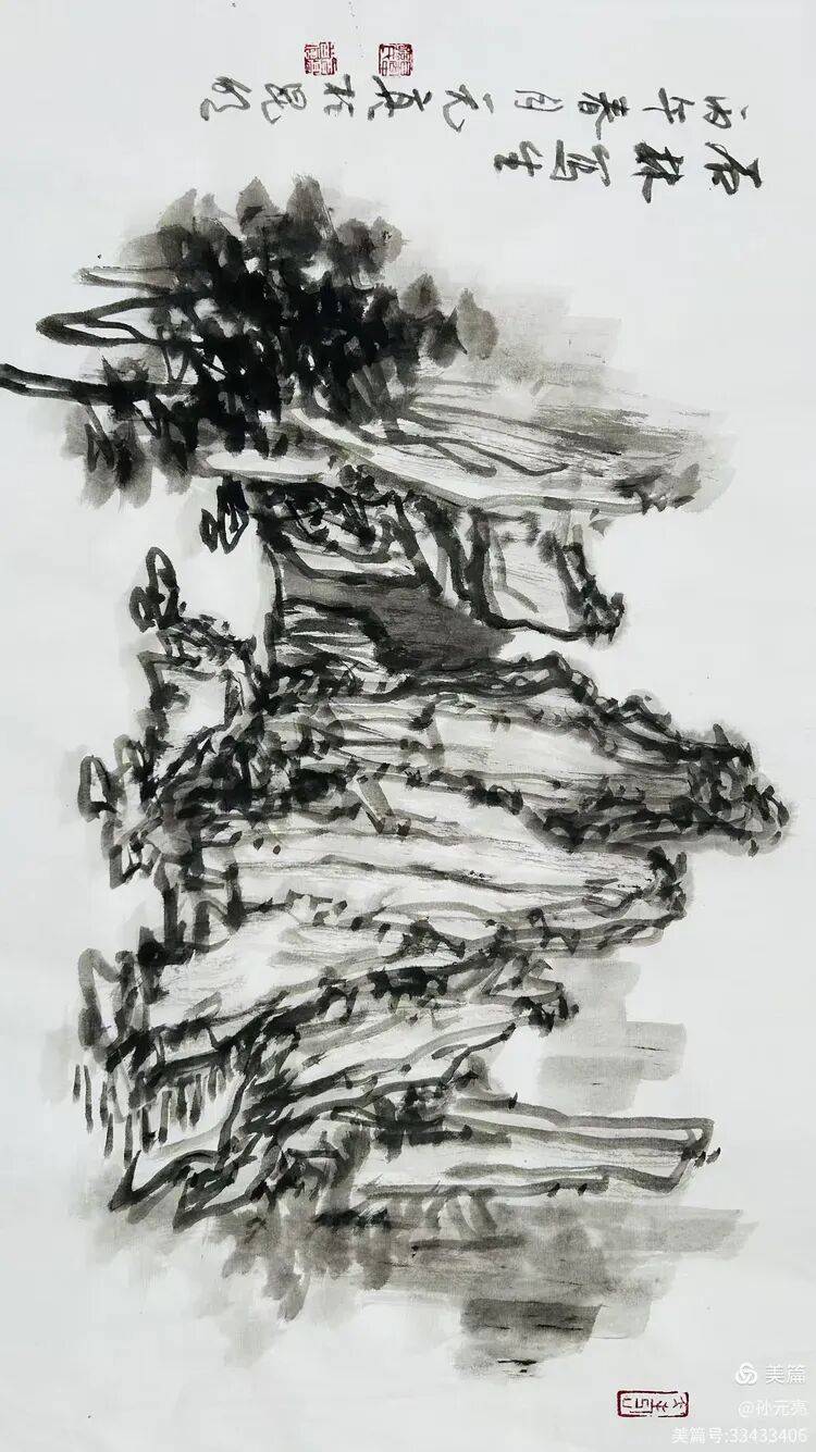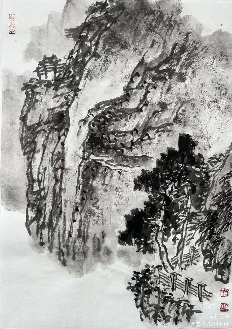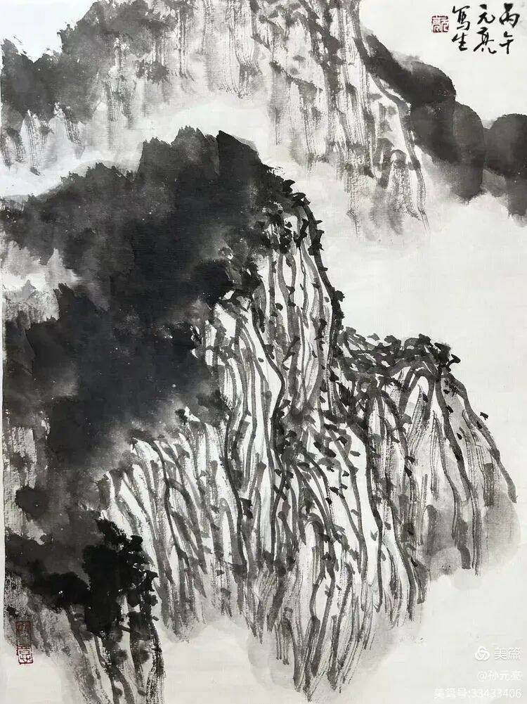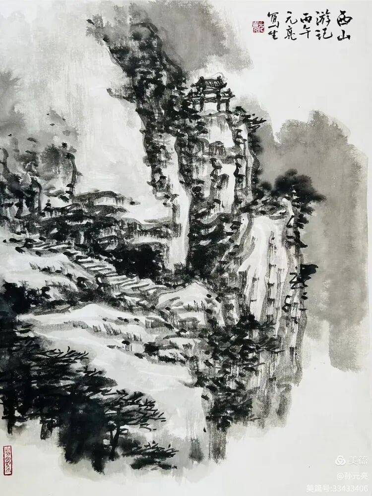 四、如今科技发达,用手机取景拍照十分方便,我的山水画写生,凭借游览之记忆,参考实景照片,发挥想象,运用传统笔墨完成写生。