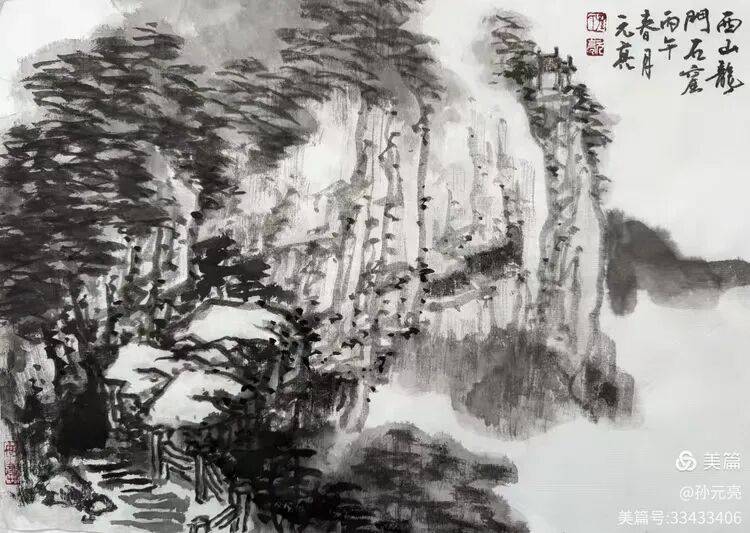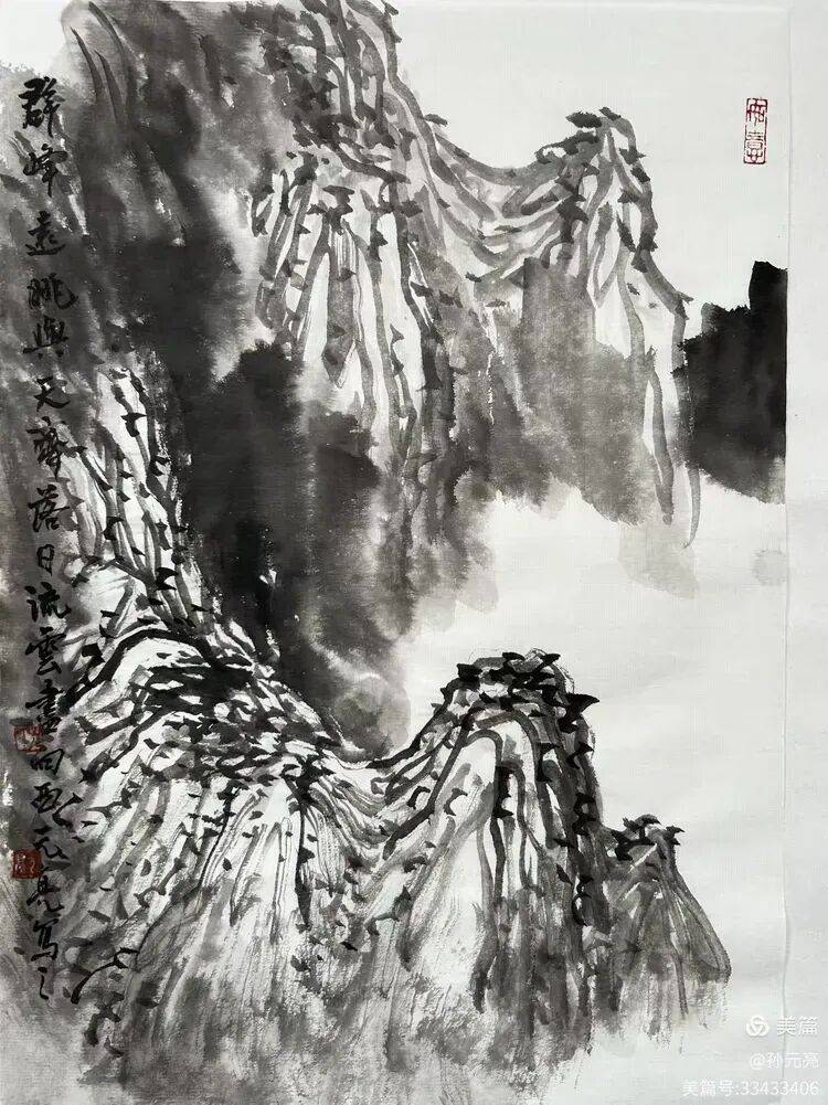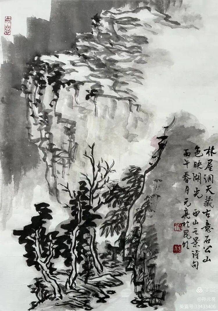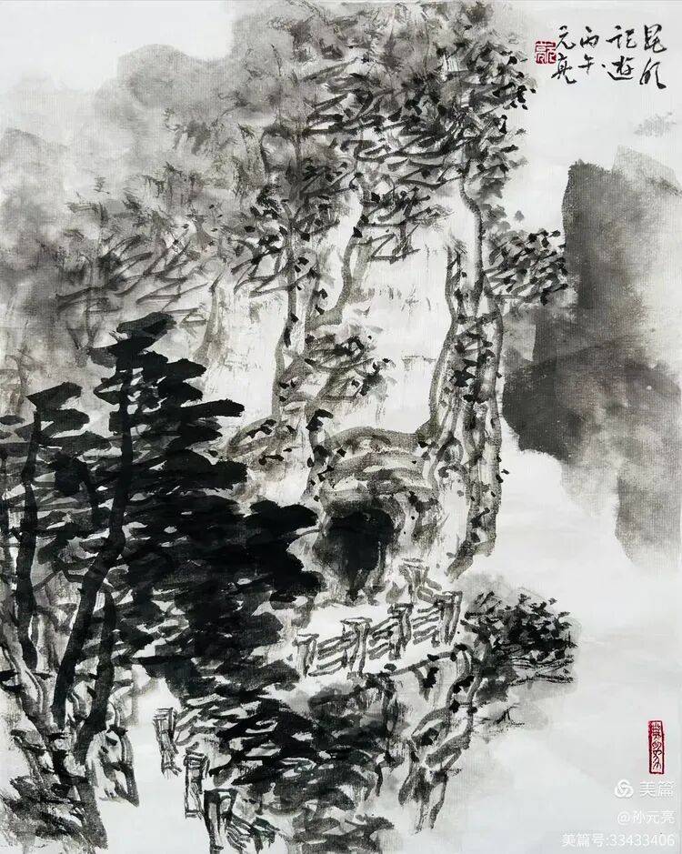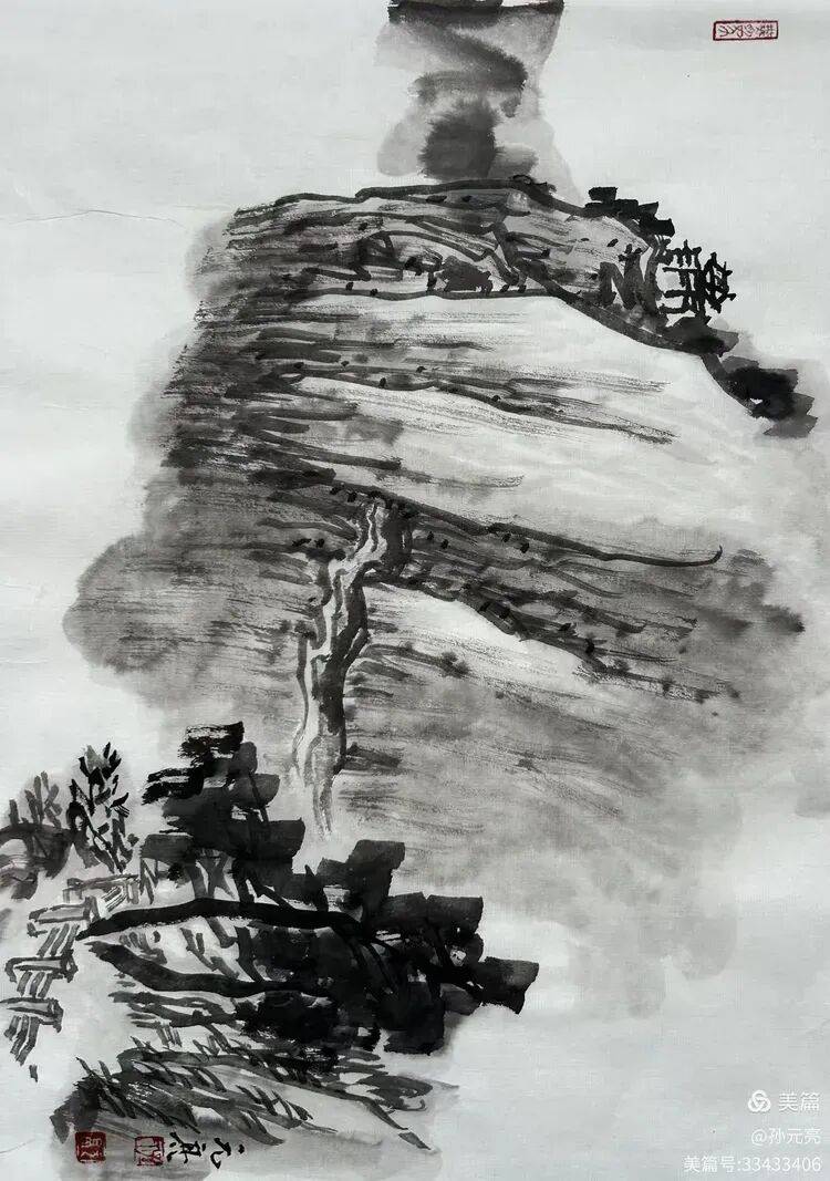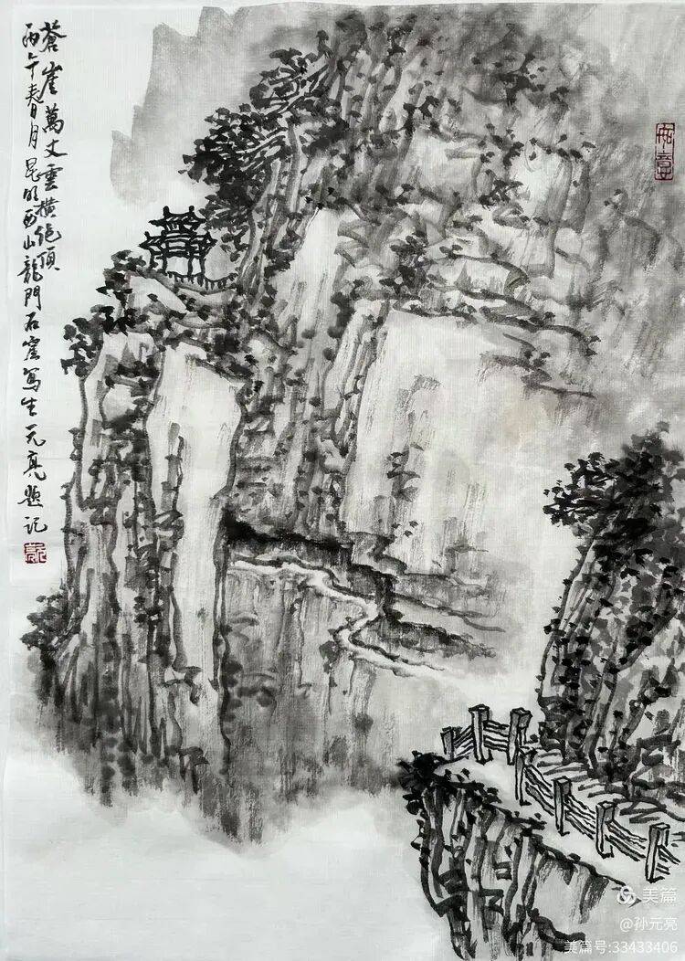 四、如今科技发达,用手机取景拍照十分方便,我的山水画写生,凭借游览之记忆,参考实景照片,发挥想象,运用传统笔墨完成写生。