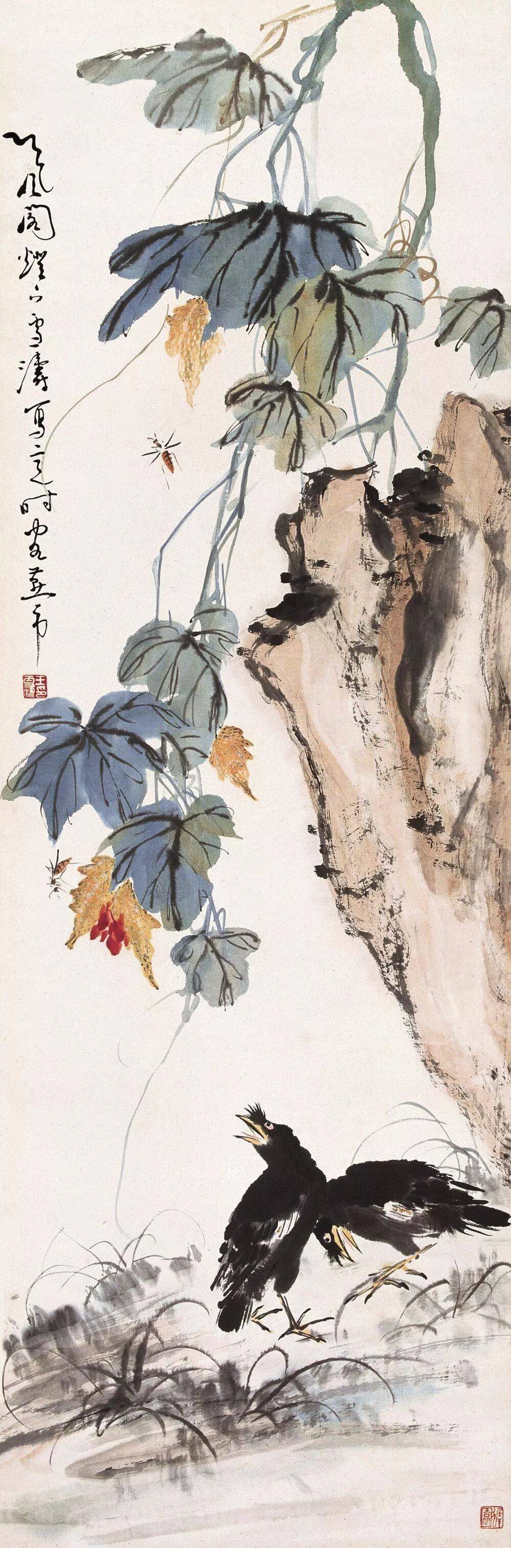 体态短小的一只蝉,有时可以视为一块必要的墨色;而生性敏捷的螳螂,在构图中往往是作为有折曲的线型来对待的,连那长长的触须,是低是扬,也要安排得当,细心的人仔细琢磨是不难领会的。