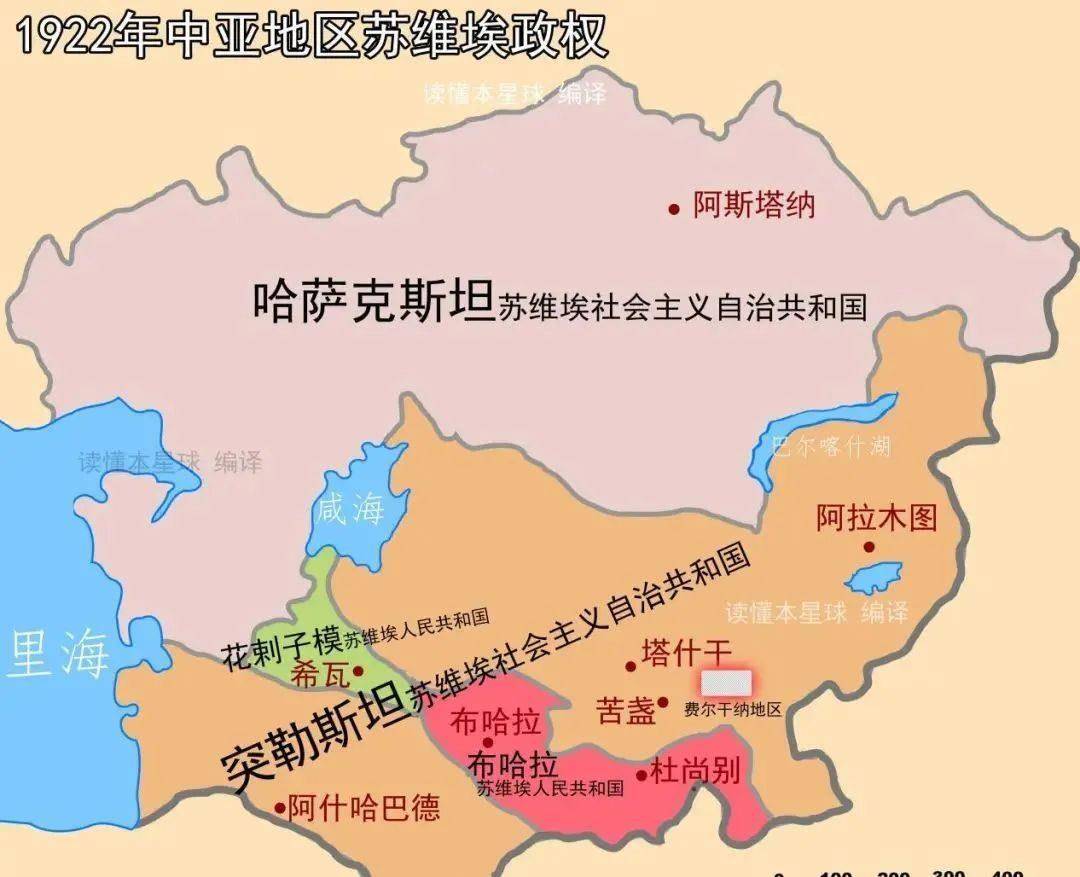 中亚地区的苏维埃政权初期十分复杂,经过整合后逐渐形成五个国家。这五个国家都是从俄罗斯划出,建立国家,随后升级加入苏联,成为加盟共和国。1936年,外高加索联邦的加盟共和国被改组,其所属的格鲁吉亚、亚美尼亚和阿塞拜疆三个共和国升级为加盟共和国,直接加入苏联。至此,苏联已有11个加盟共和国。