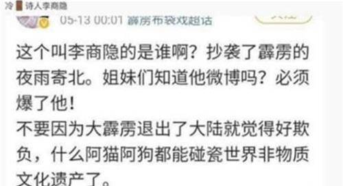 然而,令人愕然的是,去年5月,竟然有网友声称李商隐的《夜雨寄北》抄袭了一个叫做《霹雳布袋戏》的动漫,还言辞不逊地说:什么阿猫阿狗都能碰瓷世界非物质文化遗产。这种荒唐的言论让网友们哑口无言,纷纷在评论区替李商隐辩解,甚至表示希望那位网友能补上一课。