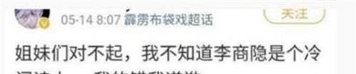 没过多久,这位网友便出来道歉,试图以李商隐是冷门诗人来掩饰自己的无知,想通过这种方式让自己显得面子上好过一些。可惜的是,这样的说辞反而更加暴露了她的浅薄与无知。显然,她并未理解古诗和现代诗之间的根本区别,若未搞清楚事实,保持沉默是最基本的修养。希望这个年轻人,未来能明白这个道理,成为一个更加谦虚和有学识的人。