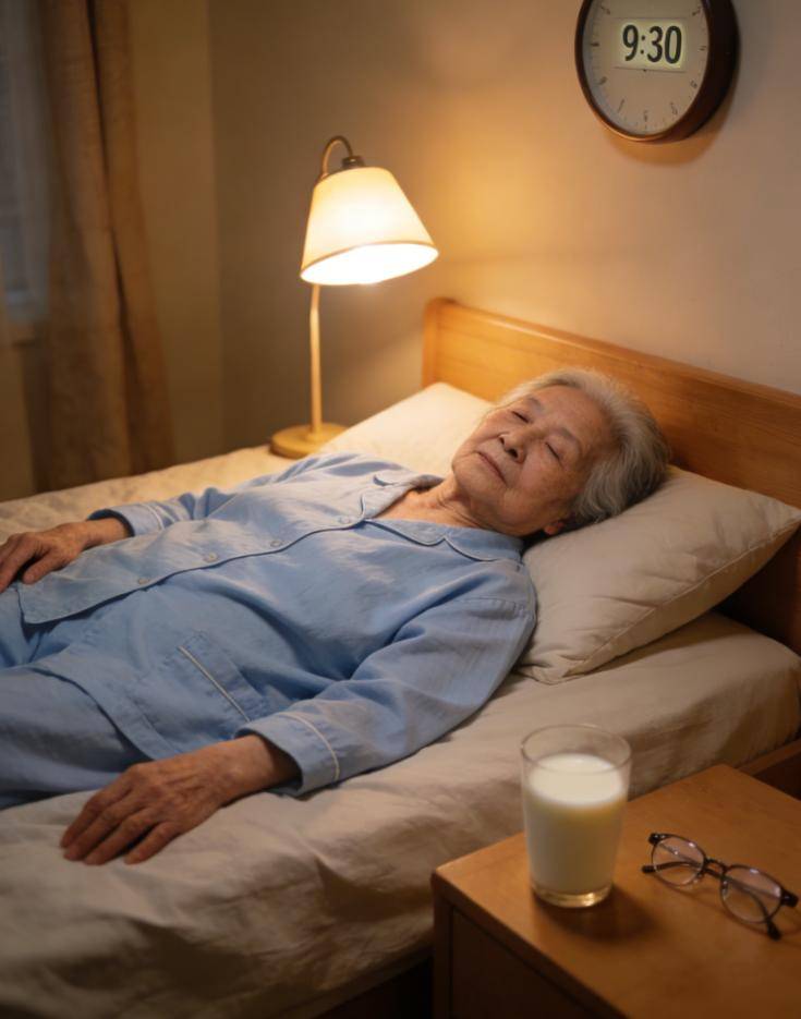 她告诉我,她从五十岁开始,就严格保持每天晚上九点半上床,早上五点半自然醒的习惯。几十年如一日,从不熬夜,也不赖床。