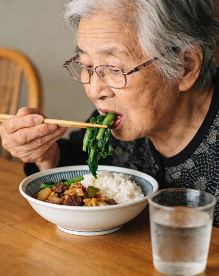李奶奶说:"我这辈子没吃过什么保健品,也不讲究什么食疗。但我有一个原则,就是吃饭一定要慢,一定要专心。"