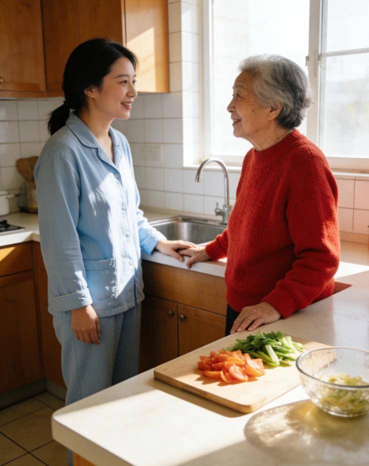 母亲补充道:"还有一点,就是要活在当下。不要总想着过去的遗憾,也不要总担心未来的变化。把注意力放在现在,珍惜眼前的每一天。这样心态就会平和很多。"