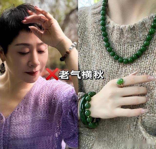 “玉养人”的观念虽然深入人心,但很多阿姨在挑选玉镯时,容易被所谓的“颜色丰富”所迷惑,买回一些质地干涩、颜色杂乱的廉价玉镯。这类玉镯往往杂质多、水头差,戴在手上不仅没有温润感,反而显得干瘪廉价。很容易给人一种“老气横秋”的感觉,仿佛提前进入了暮年,失去了中年女性应有的活力与时尚感。
