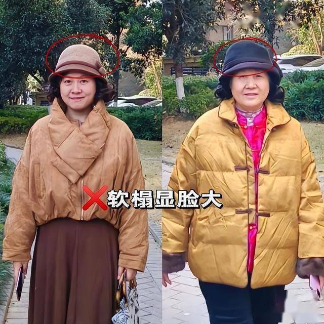 帽子本是修饰脸型、遮挡白发的神器,但市面上很多所谓的“妈妈帽”却是灾难现场。特别是那种材质软塌、帽檐窄小、上面还装饰着硕大立体花朵或亮片的针织帽、渔夫帽。这种帽子不仅无法修饰随着年龄增长而变得松弛的面部线条,反而会因为软塌的材质暴露头型的缺点。
