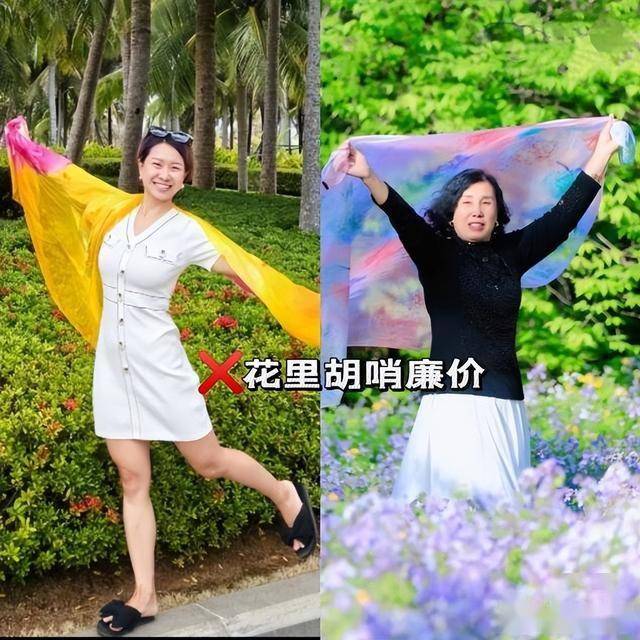 丝巾本是优雅女性的代名词,赫本戴丝巾是经典,但到了部分大妈手中却变了味。问题出在“花色”和“戴法”上。那些大红大绿、印花繁复、面料廉价反光的丝巾,被称为“油腻重灾区”。很多阿姨喜欢将丝巾随意地披在肩上,或者在拍照时高高抛起,自以为很飘逸,实则显得凌乱且没有质感。