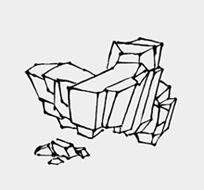 (二)轮廓的转折应与石块的体面变化相吻合。皴笔不可与轮廓相左。轮廓若处理不好,皴法也将无法表现好。内部轮廓的疏密也有转折过渡的作用。在表现石块体面时,我们可先勾后皴(见图一,图二),亦可先皴后勾(见图三,图四),还可以勾皴并举。