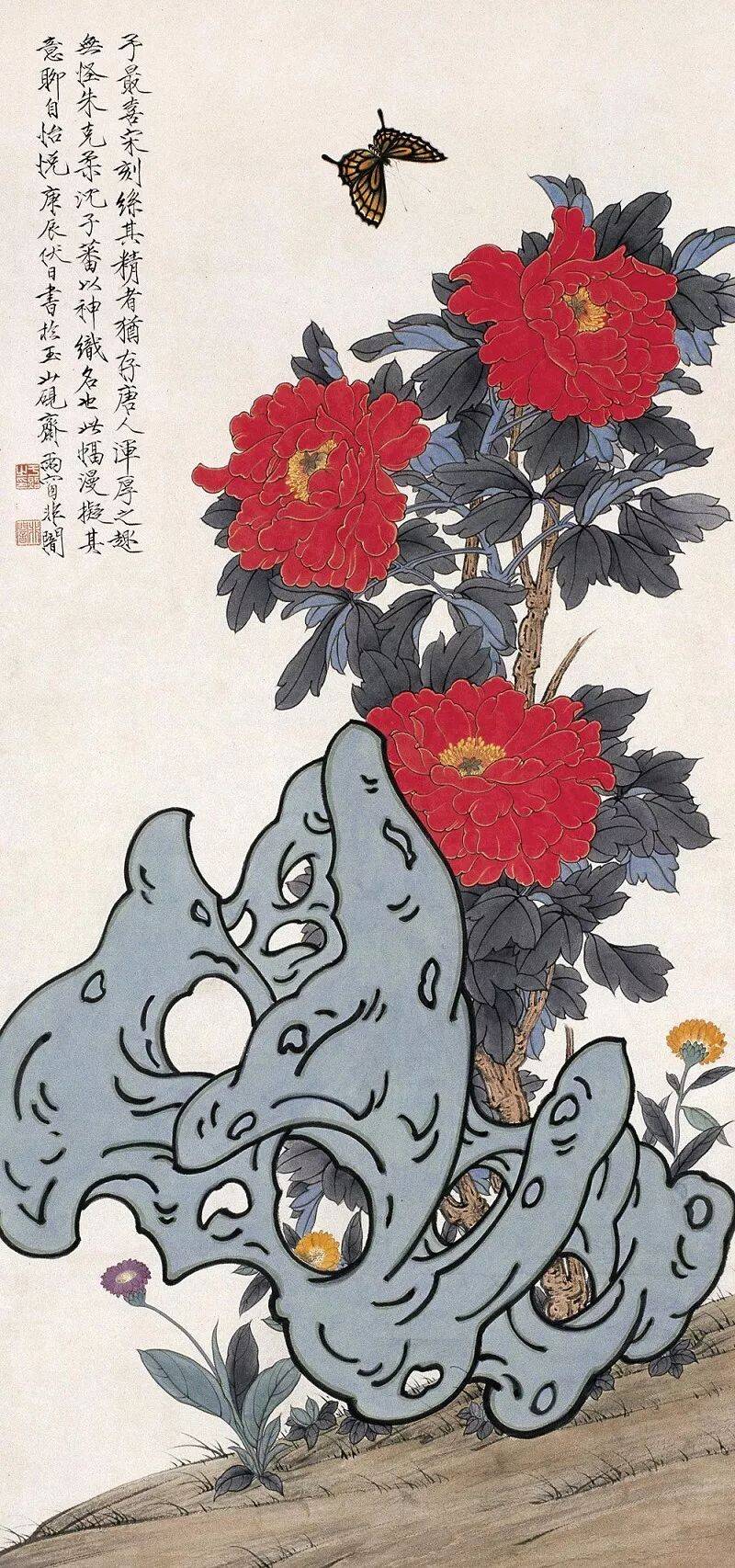 牡丹配应该湖石应该怎么画?教程解析,名家牡丹湖石欣赏