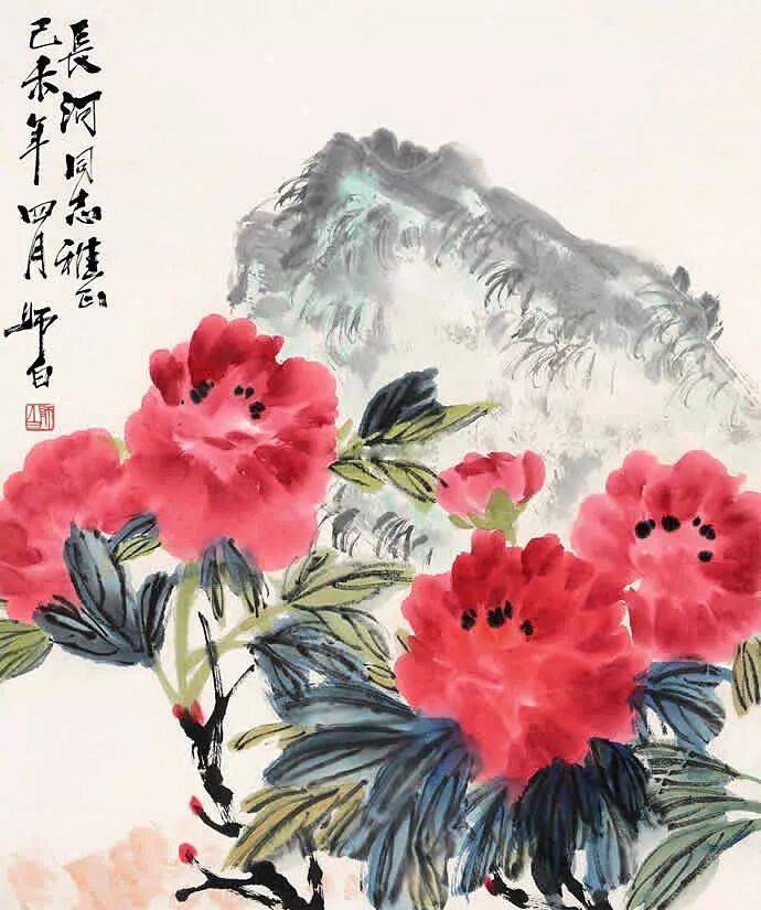 王个簃牡丹湖石