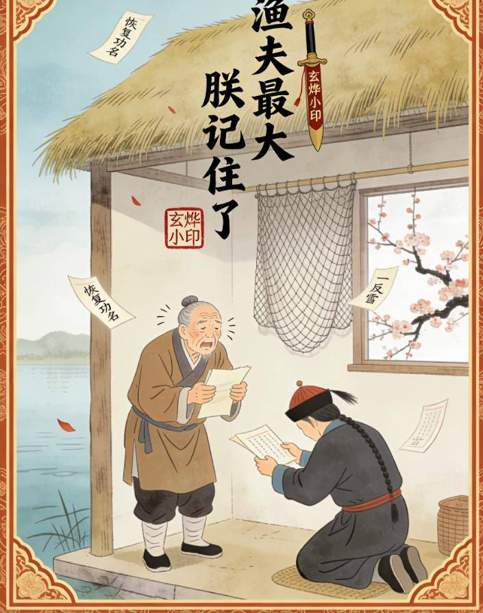老渔夫眯起眼睛,看着康熙,忽然笑了。