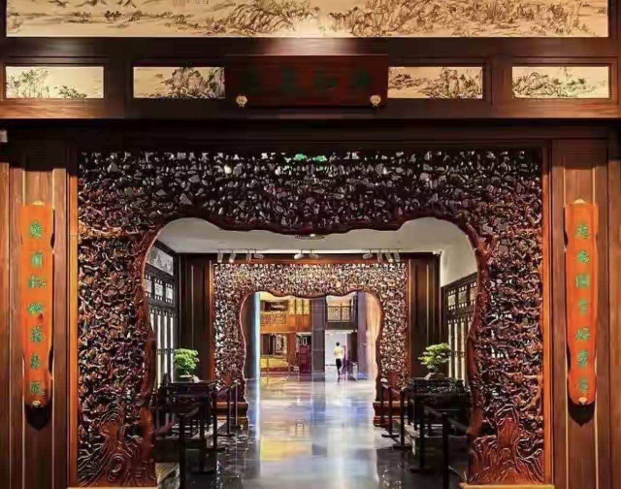 近千件镇馆珍品静立其中,紫檀大料堆积如山,百年成材、十檀九空,市价每吨大几十万至百万,整体价值早已无法用金钱估量。