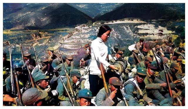 在这张照片中,一群八路军战士正在准备出发。他们正在等待命令,而此时,一位身穿白衣的女子,手里提着两个篮子,正分发着干粮给每一位战士。她的身影在这些战士中,似乎格外温暖而坚定。那时的生活虽然艰苦,但每一份力量都没有被忽视,每一份支持都在延续着革命的火种。