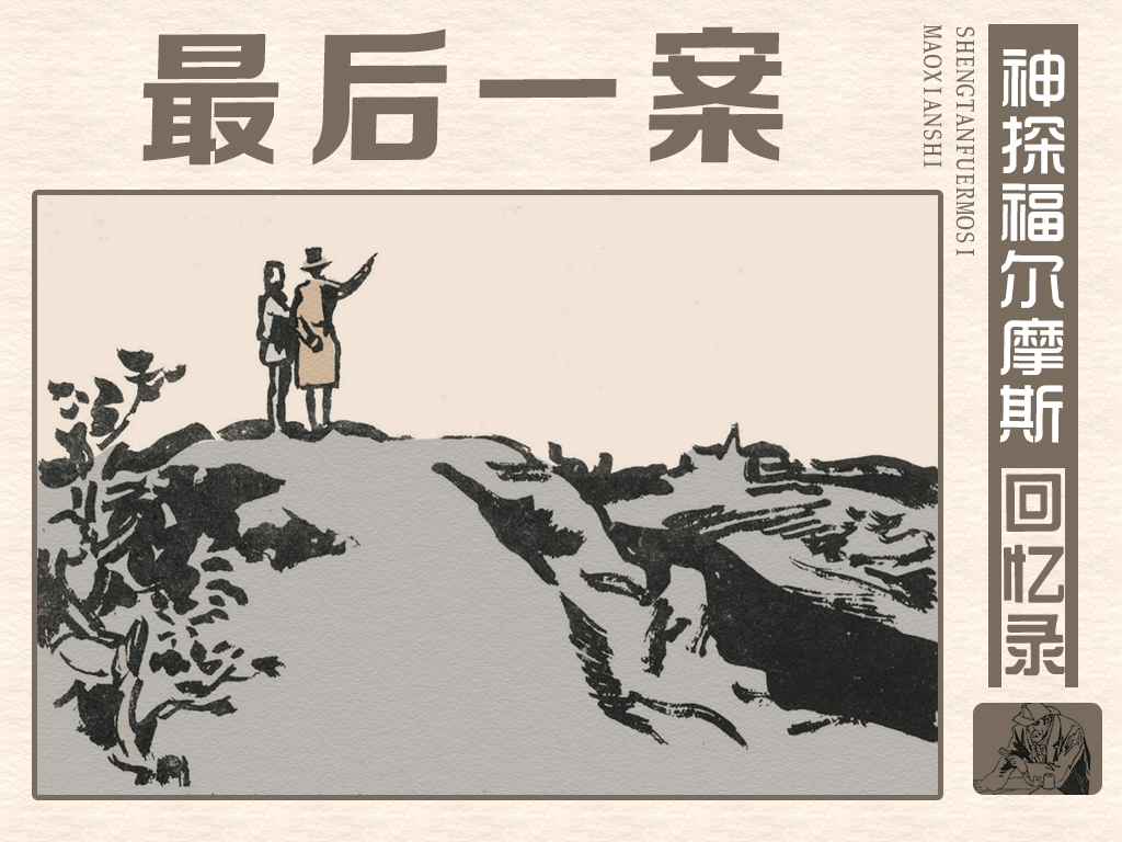 连环画《最后一案》改编自英国作家阿瑟·柯南·道尔创作的系列推理小说,讲述了福尔摩斯与莫里亚蒂教授展开终极对决的故事。福尔摩斯在意识到莫里亚蒂的犯罪网络带来的致命威胁后,与华生前往瑞士,以图破解困局。在莱辛巴赫瀑布,福尔摩斯与莫里亚蒂狭路相逢,展开了惊心动魄的搏斗。搏斗中,二人坠入深渊,福尔摩斯就此“消失”,留下无尽悬念。