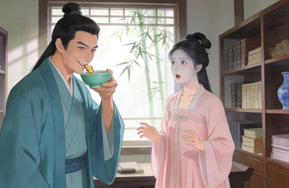 妻子林秀娘端着一碗热汤走进来,脸上带着温和的笑意:"相公,天凉了,我熬了些姜汤,你趁热喝。"