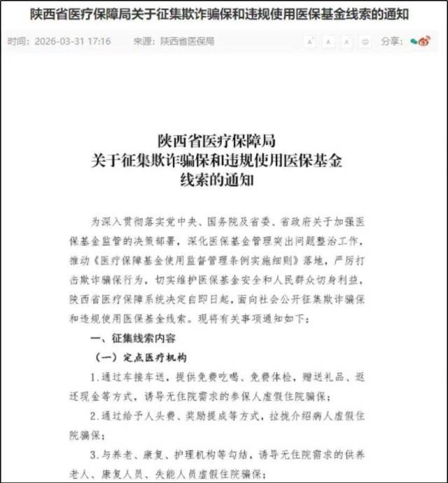 陕西省医疗保障局关于征集线索的通知