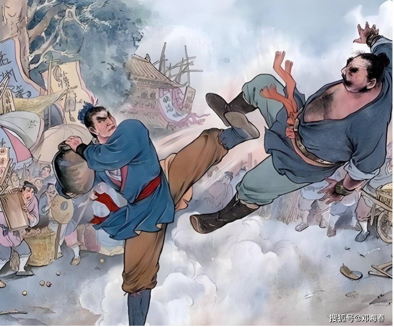 武松半醉之间,直闯快活林,一路摇晃,却气势逼人。见了蒋门神,不问情由,便是一顿拳脚。