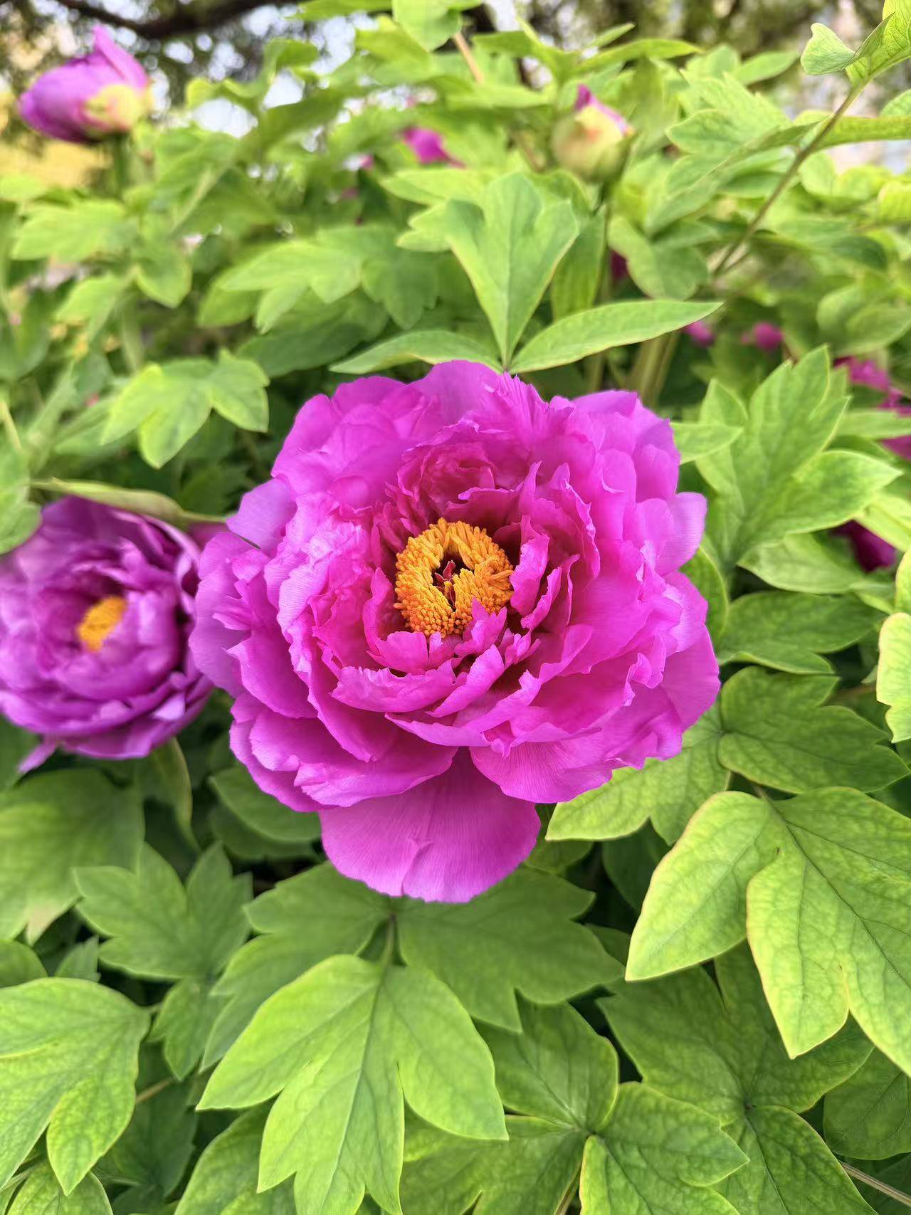 - 晚花期(4月20日—5月初): 虽然大部分牡丹渐渐凋谢,但仍有部分晚开品种,如“海黄”、“金阁”等正值观赏期。此时还可以在部分园区无缝衔接观赏早花芍药,实现“花王”与“花相”的同框竞艳。