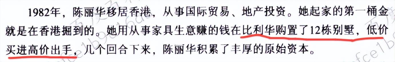 也有说法,陈丽华移民香港后,在比华利入手12栋别墅后高价卖出,拿到了第一桶金。陈丽华是在香港炒楼赚得第一桶金的吗?陈丽华生前创办了富华国际集团,这家公司是她1988年在香港创办的,以高端地产为核心产业,涵盖文化艺术、资产运营管理、金融及健康等领域。如此看来 ,她的财富确实主要来自于房地产,但是第一桶金,又是如何在香港通过炒楼赚得的呢?