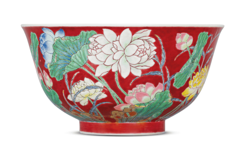 《清康熙約61年 御製胭脂紅地琺瑯彩千葉蓮紋盌》2019佳士得 成交價:HKD 87,200,000